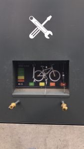 In the middle of a side street, literally right in the street, there was a Bike Repair & Rest Station – with all the necessary tools, instructions for fixing the most common technical problems, a bicycle lift so repairs can be made in a comfortable position, and benches.